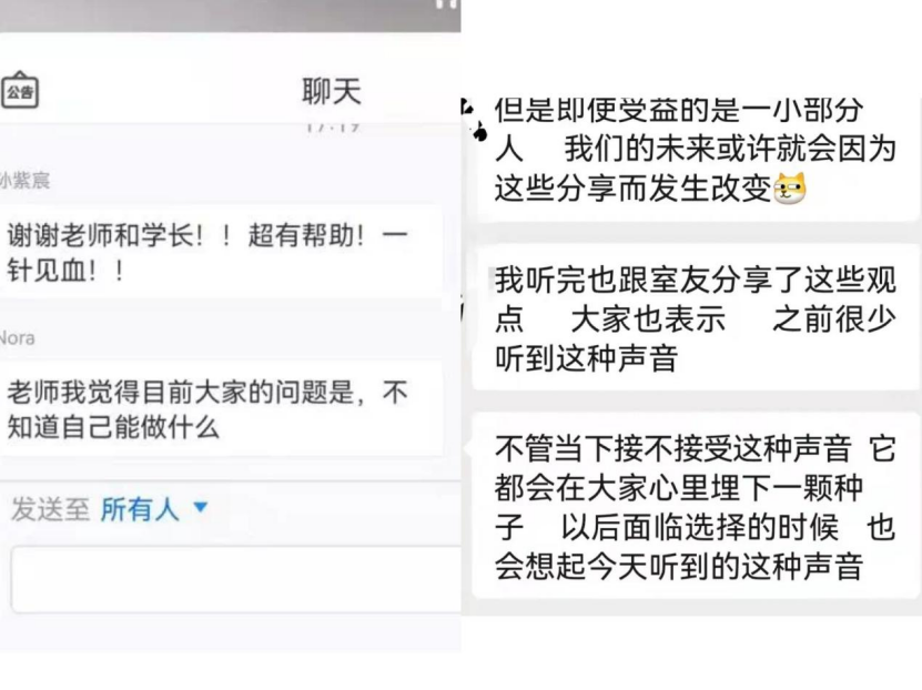 尽管不能真正地面对面,但学长的真知灼见和真诚的态度着实打动了线上的每位同学。大家还是进行了热烈的提问和交流,很多同学表示收获颇丰,学长的经历和建议也促使了自己对未来的学业和发展进行认真的反思。