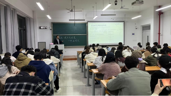 首先,房甄老师从论文写作方向、文献参考和论文检索、论文结构等方面对本科毕业论文进行了讲解,并进一步从选题、摘要(关键词)、绪论、文献综述、现状分析、主题研究、总结建议、参考文献各个部分展开层层深入的剖析。随后,房甄老师立足当下国际环境和社会就业的背景,结合我们毕业生的就业情况和自身经历经验,介绍了本科毕业生的多元发展方向,建议同学们“多条腿走路”——多手准备,不要只局限于一个方向。最后,房甄老师对同学们的学习生活和未来发展提出了要求,激励同学们珍惜校园时光,脚踏实地,通过拼搏创造美好未来。