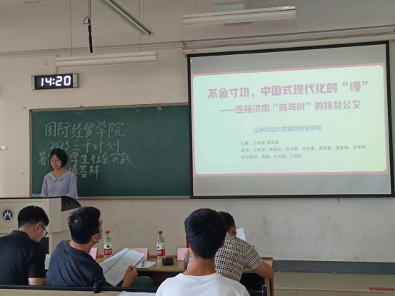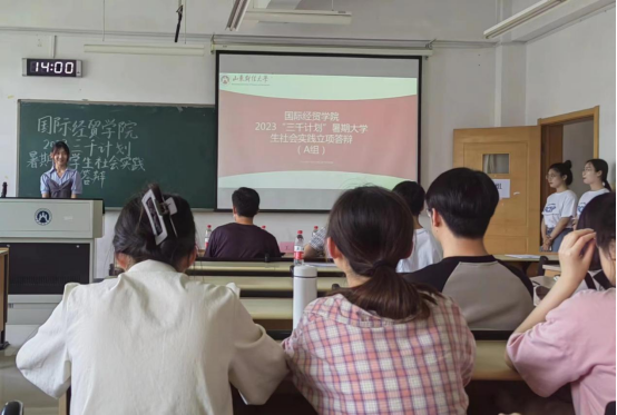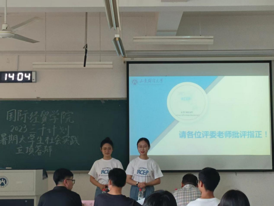 本次答辩会由国际经贸学院学生会创新实践部承办。我们评委刘伟全、王涛、刘璐、戚建薇、邹通、房甄老师出席指导,社会实践各队队长及部分队员参与了本次答辩。