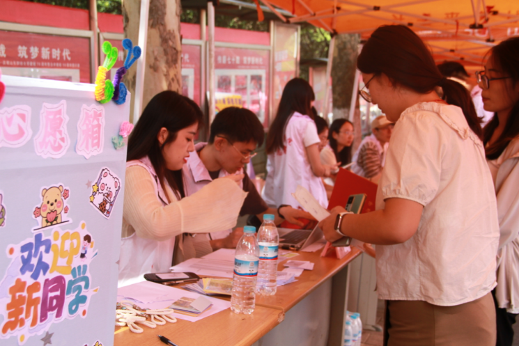 在迎新现场,陆续到达的新同学们受到学长学姐们的热情迎接,感受到学院大家庭的温暖。迎新现场,虽然已是9月,但天气依旧炎热,而志愿者们不惧炎热的天气,有条不紊地帮助新生办理入学手续。他们有的在迎新点处统计基本信息、发放新生礼包,有的帮助新生将行李运往宿舍,用心周到的服务让新同学们倍感亲切。学院特意为新生准备了“时光邮筒”“心愿箱”,引导新同学在迎新现场写下自己的美好心愿。另外,迎新点附近的展板则为新生们详细地介绍了Bwin必赢概况、学科建设、学团工作、毕业生去向等内容,让他们对学院和所学专业有着进一步了解。此外,学院还为新生精心设计了T恤、卡套、贴纸等文创礼物,让新生切身感受到学院的关爱和文化风采。
