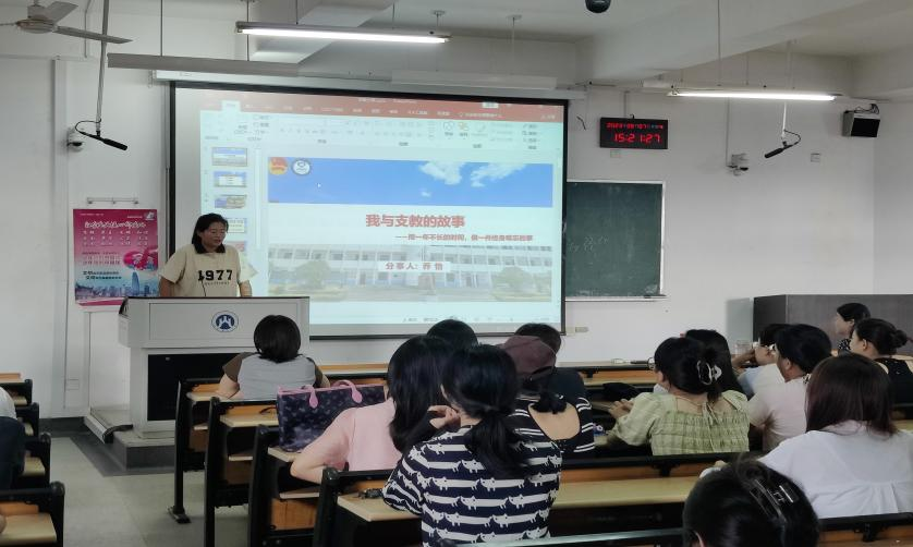 乔怡同学动情地分享了自己在贵州的支教经历:凭借要用知识帮助孩子们走出大山的信念支撑她义无反顾地在研一后选择休学踏上了支教之路。一年里她除了担任地理老师,还积极参与了公益服务和疫情防控工作,守护留守儿童的心理健康和生命安全。乔怡讲到自己用短短的一年时间完成了一件终身难忘的事情,也希望师弟师妹们不忘初心、衷于理想。