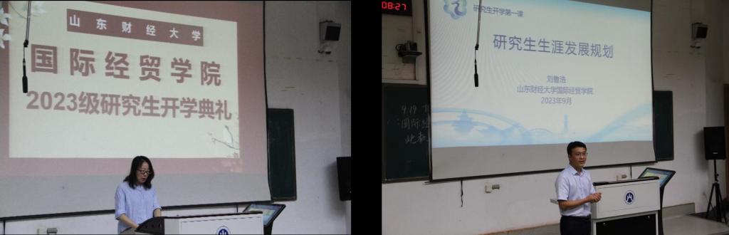 典礼结束后,分管学院研究生工作的副院长刘鲁浩教授给同学们上了开学第一课,主要介绍了国际经贸领域涉及的研究话题、硕博招生专业情况、研究生生涯的过程、学位论文的流程并为研究生们提供了发展规划建议,为研究生的学业规划指明了方向。
